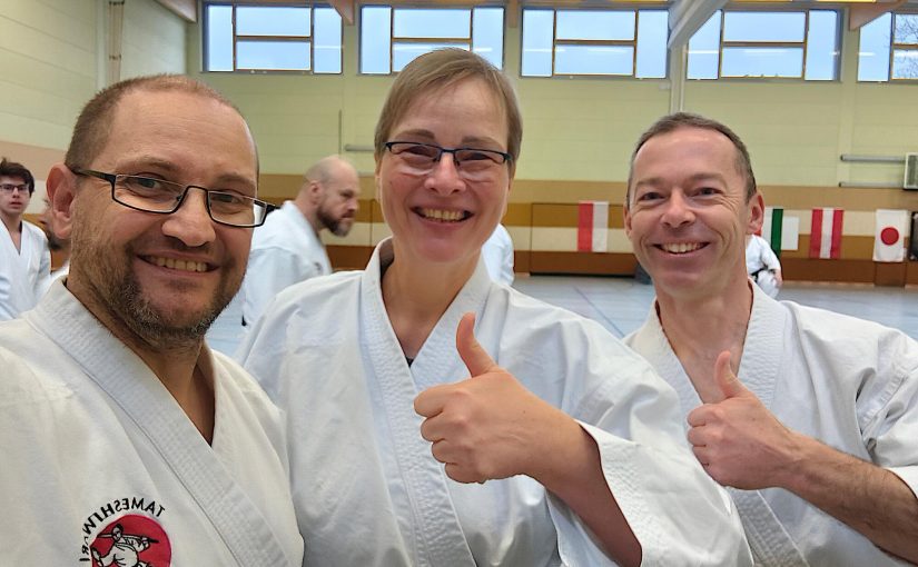 Ganz grundsätzlich lief das Training nach einem ähnlichen Muster wie immer. Grundlagen (Kihon) als Vorbereitung und dann eine neue, Assai-Kata mit ungewohnten Technikkombinationen, die Schritt für Schritt zusammen mit passenden Partnerübungen erlernt wird.